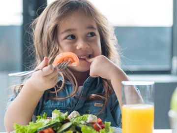 A hot lunch is provided with a main dish, fresh vegetables and fresh fruit on a daily bases.